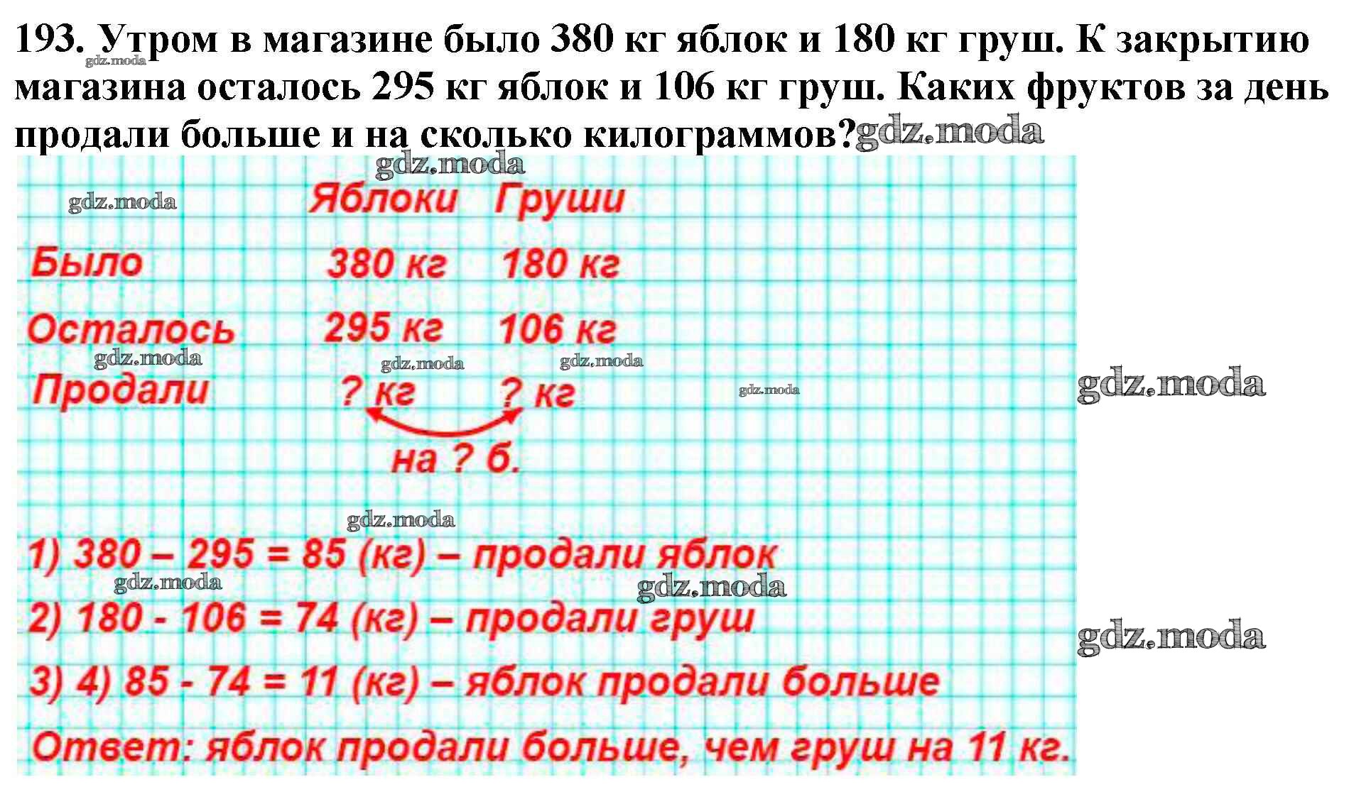 ОТВЕТ на задание № 193 Учебник по Математике 4 класс Моро Школа России