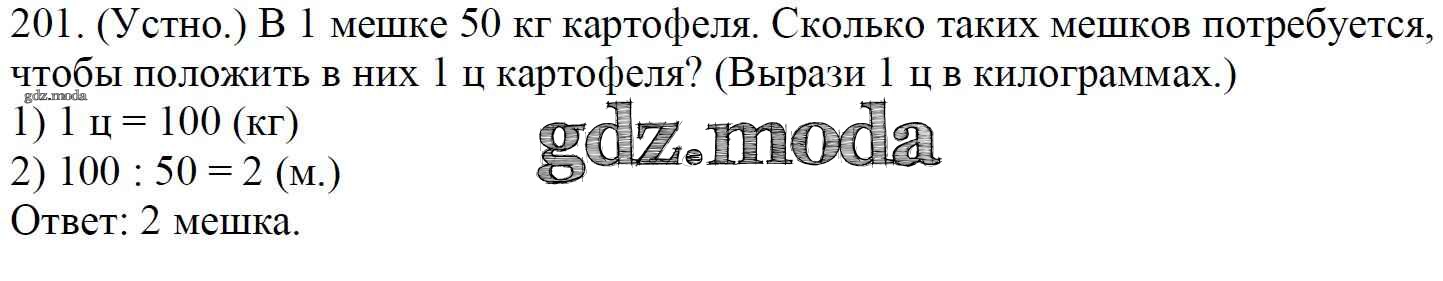 ОТВЕТ на задание № 201 Учебник по Математике 4 класс Моро Школа России