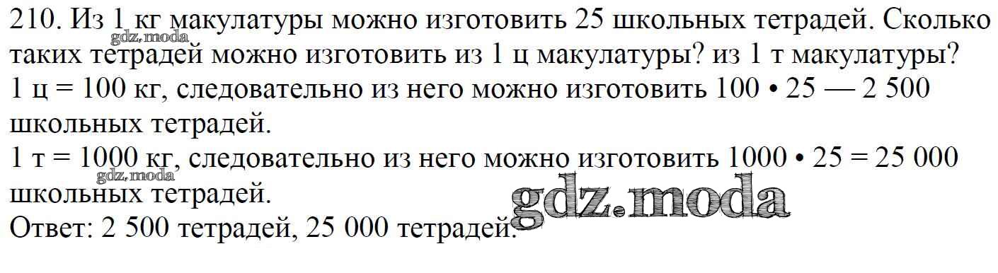 ОТВЕТ на задание № 210 Учебник по Математике 4 класс Моро Школа России