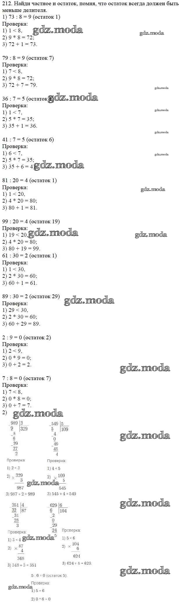 ОТВЕТ на задание № 212 Учебник по Математике 4 класс Моро Школа России