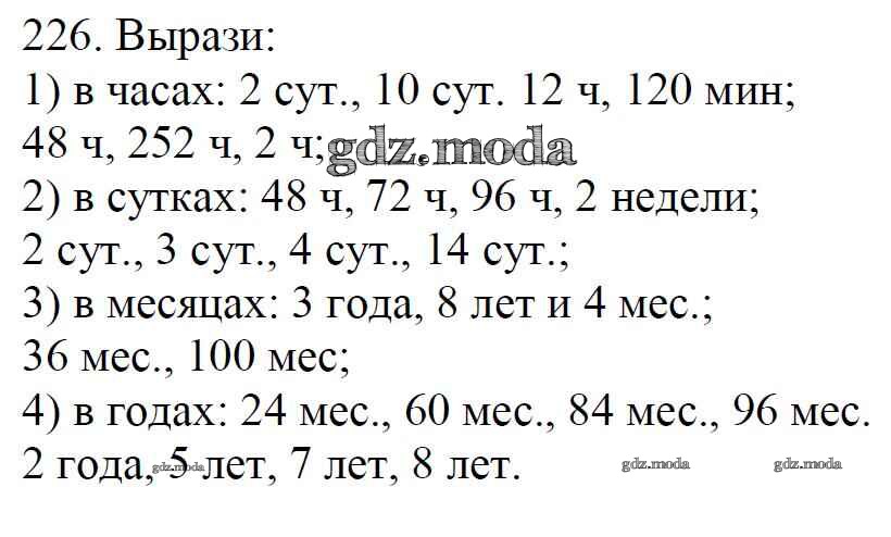 ОТВЕТ на задание № 226 Учебник по Математике 4 класс Моро Школа России