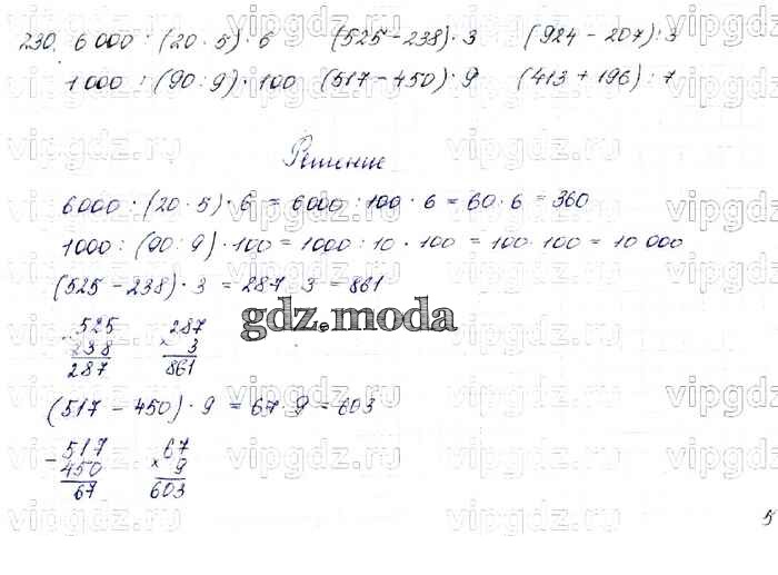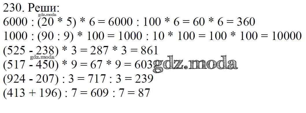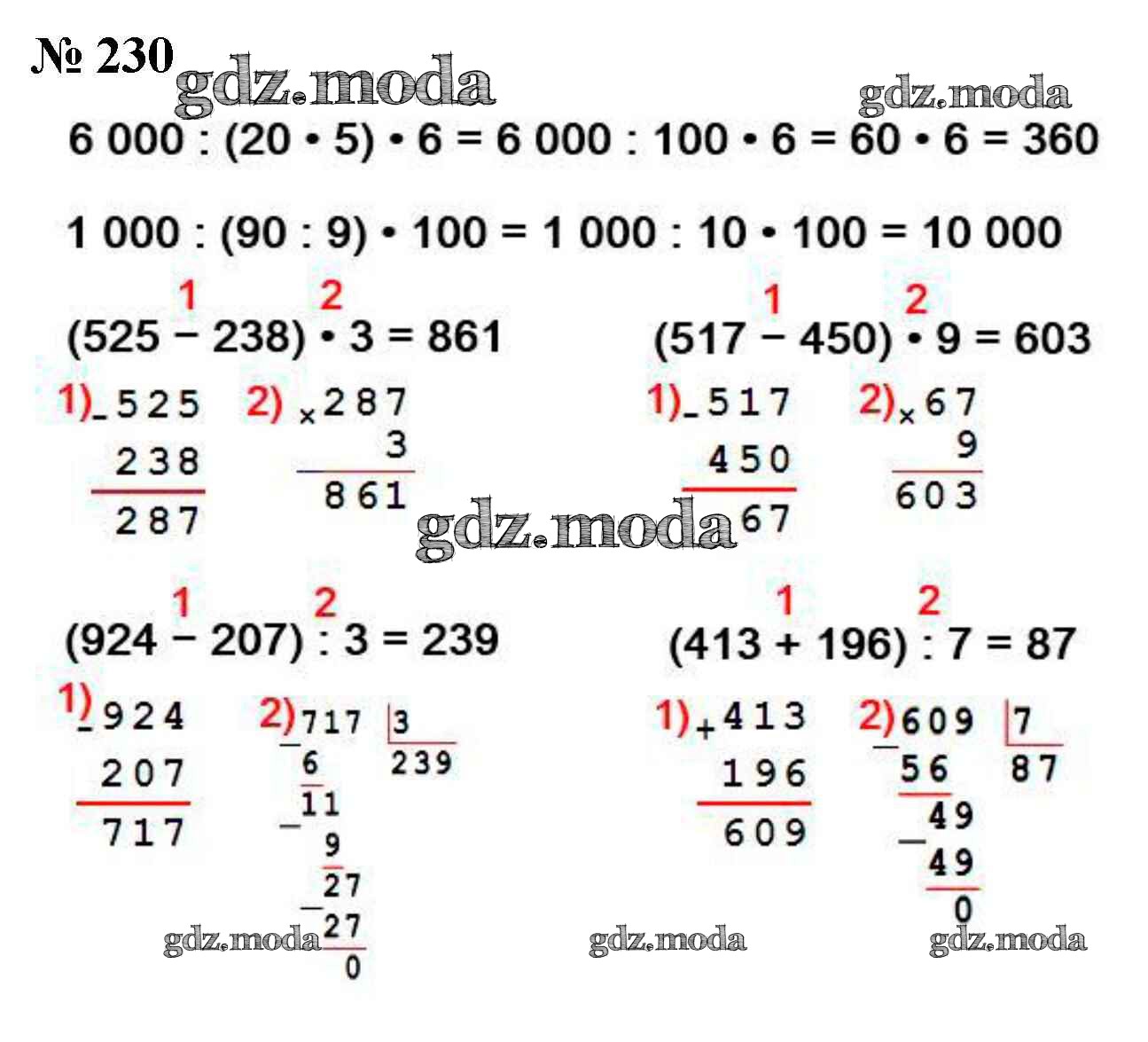 ОТВЕТ на задание № 230 Учебник по Математике 4 класс Моро Школа России