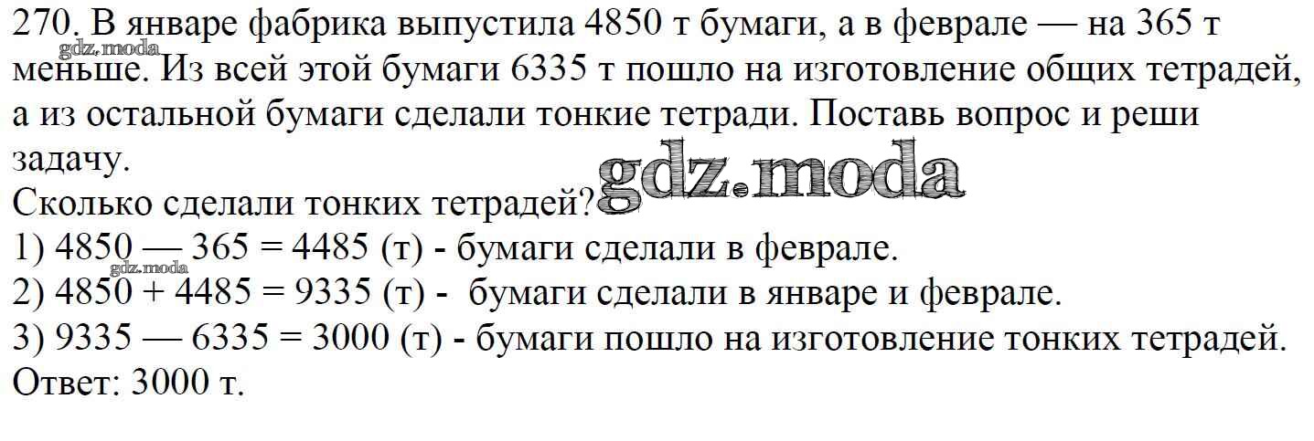 ОТВЕТ на задание № 270 Учебник по Математике 4 класс Моро Школа России