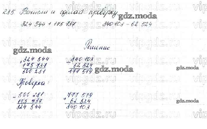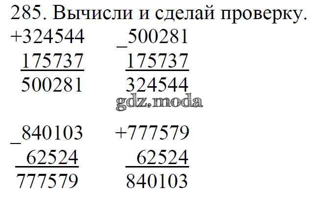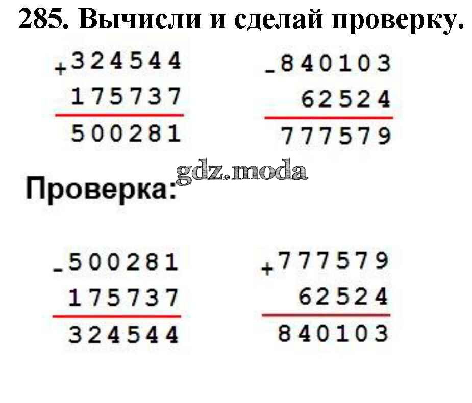 ОТВЕТ на задание № 285 Учебник по Математике 4 класс Моро Школа России
