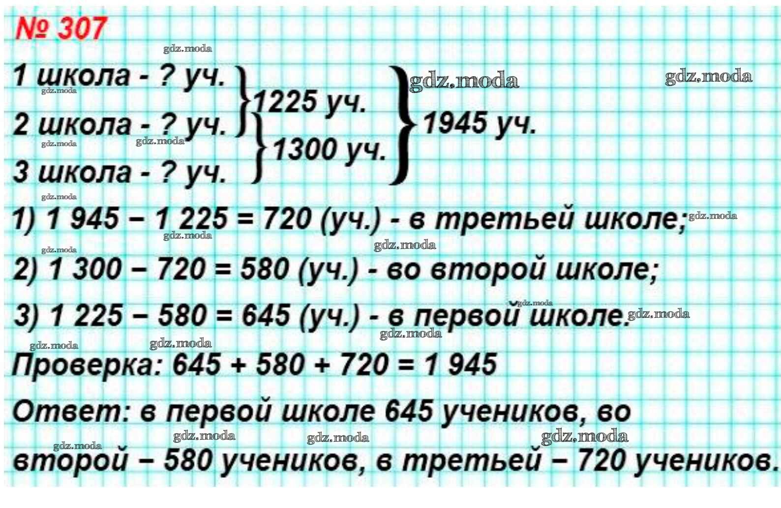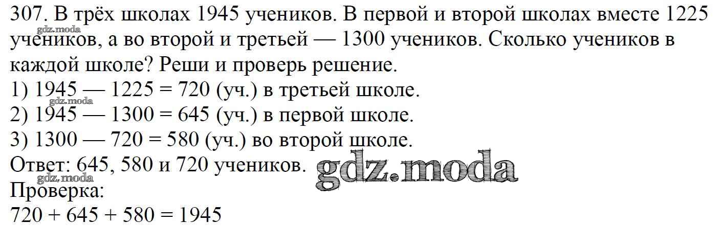 ОТВЕТ на задание № 307 Учебник по Математике 4 класс Моро Школа России