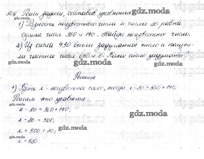 ОТВЕТ на задание № 309 Учебник по Математике 4 класс Моро Школа России