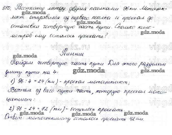 ОТВЕТ на задание № 310 Учебник по Математике 4 класс Моро Школа России