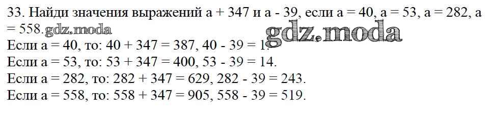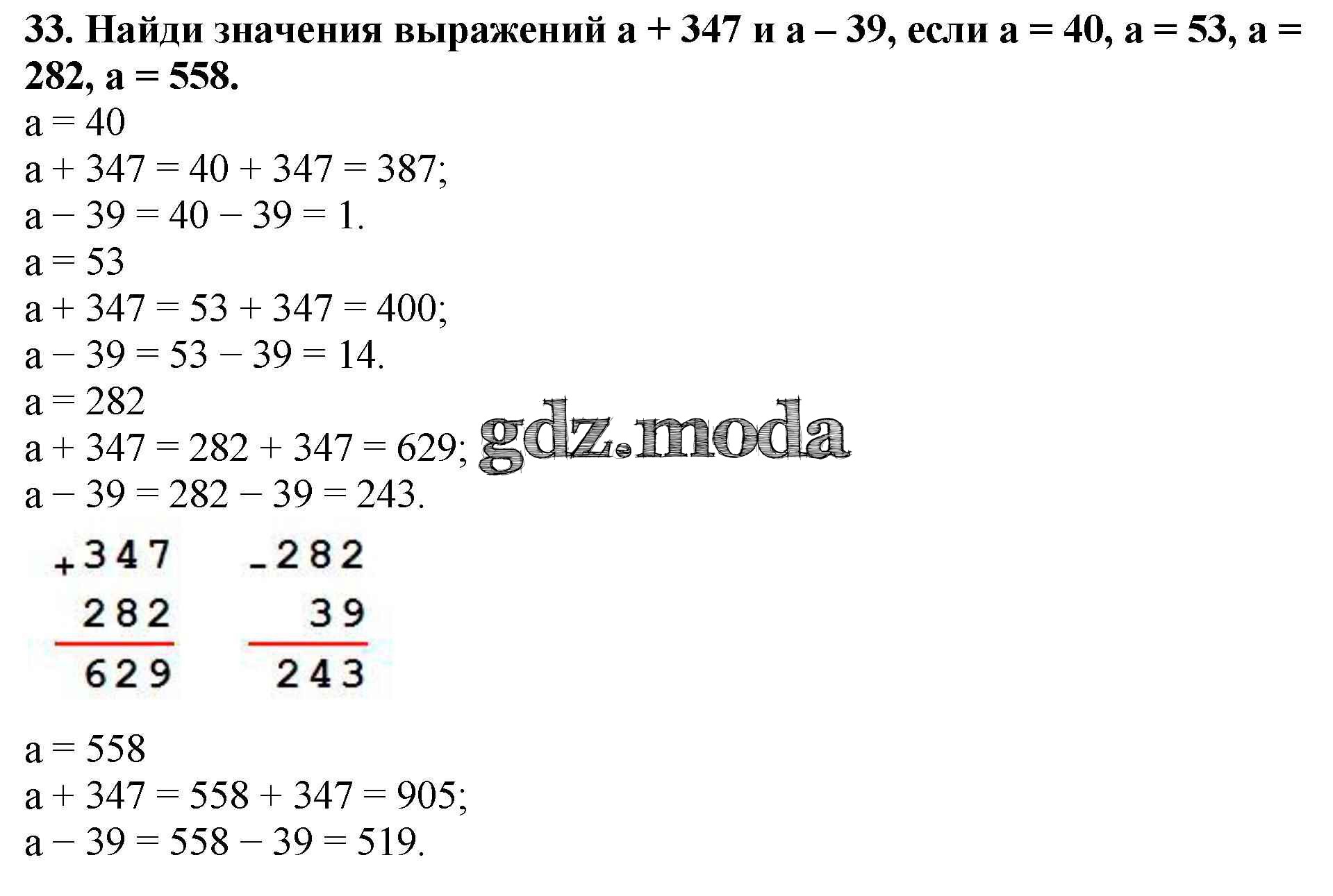 ОТВЕТ на задание № 33 Учебник по Математике 4 класс Моро Школа России