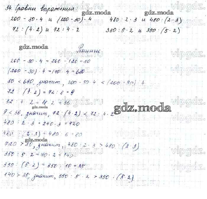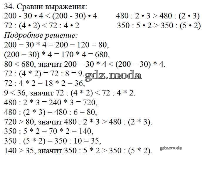 ОТВЕТ на задание № 34 Учебник по Математике 4 класс Моро Школа России