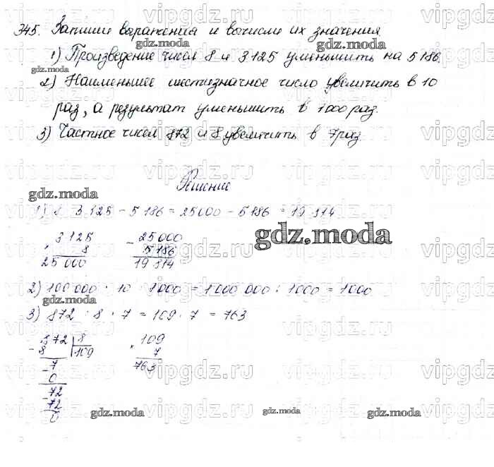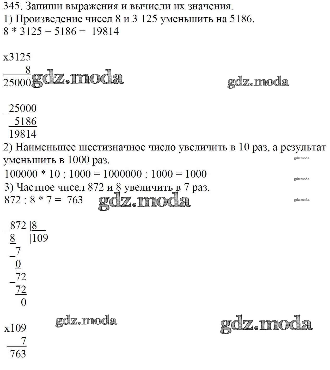 ОТВЕТ на задание № 345 Учебник по Математике 4 класс Моро Школа России