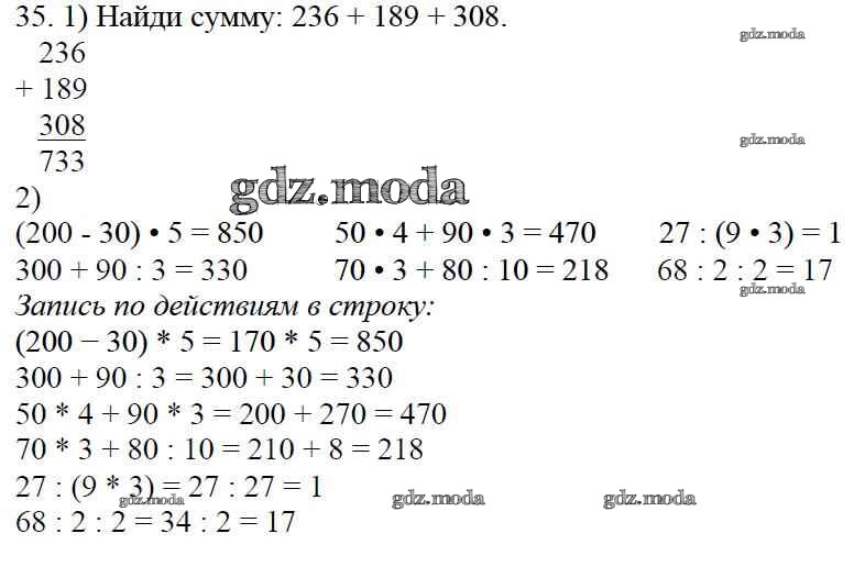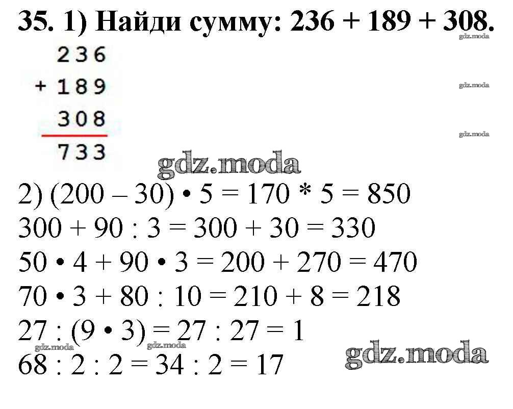 ОТВЕТ на задание № 35 Учебник по Математике 4 класс Моро Школа России