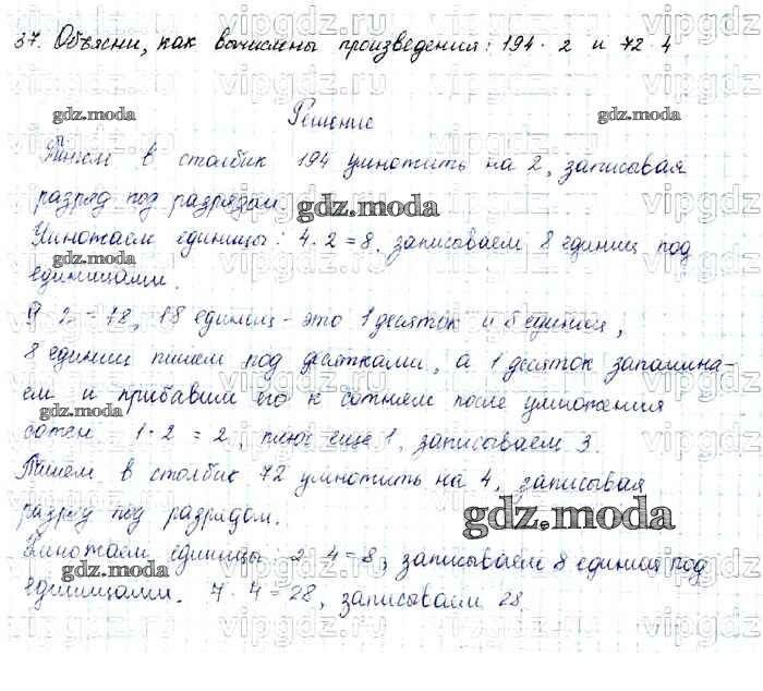 ОТВЕТ на задание № 37 Учебник по Математике 4 класс Моро Школа России