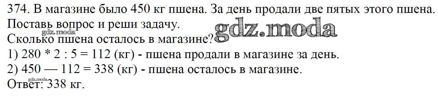 ОТВЕТ на задание № 374 Учебник по Математике 4 класс Моро Школа России