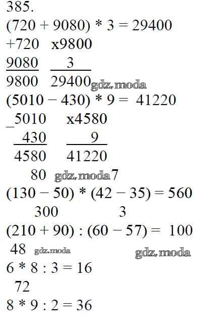 ОТВЕТ на задание № 385 Учебник по Математике 4 класс Моро Школа России