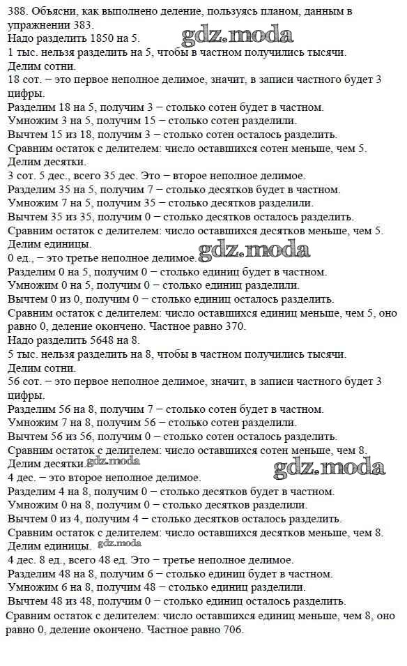 ОТВЕТ на задание № 388 Учебник по Математике 4 класс Моро Школа России