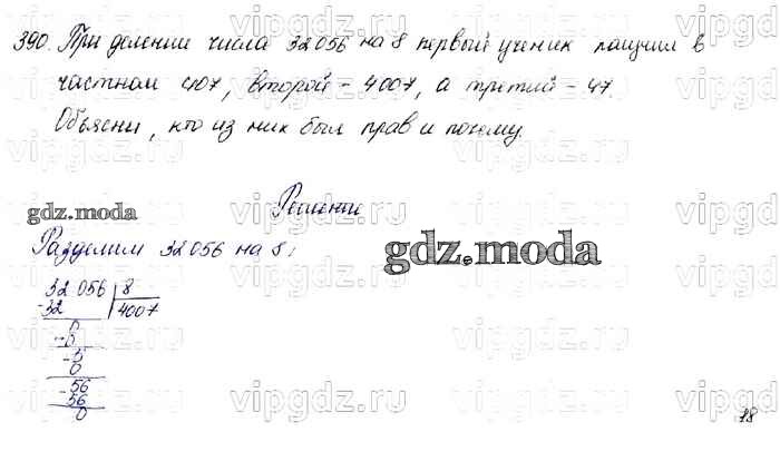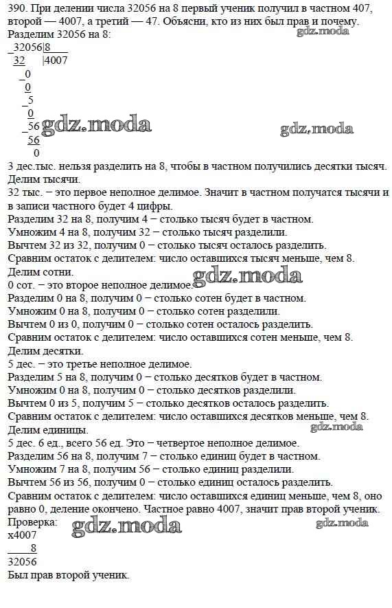 ОТВЕТ на задание № 390 Учебник по Математике 4 класс Моро Школа России