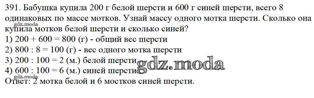 ОТВЕТ на задание № 391 Учебник по Математике 4 класс Моро Школа России