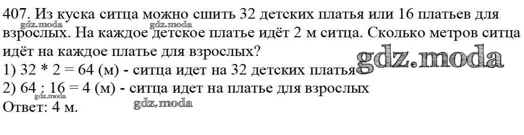 ОТВЕТ на задание № 407 Учебник по Математике 4 класс Моро Школа России