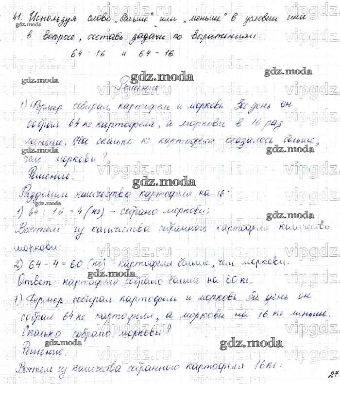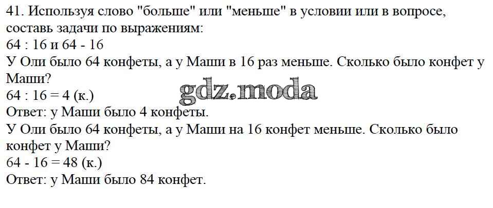 ОТВЕТ на задание № 41 Учебник по Математике 4 класс Моро Школа России