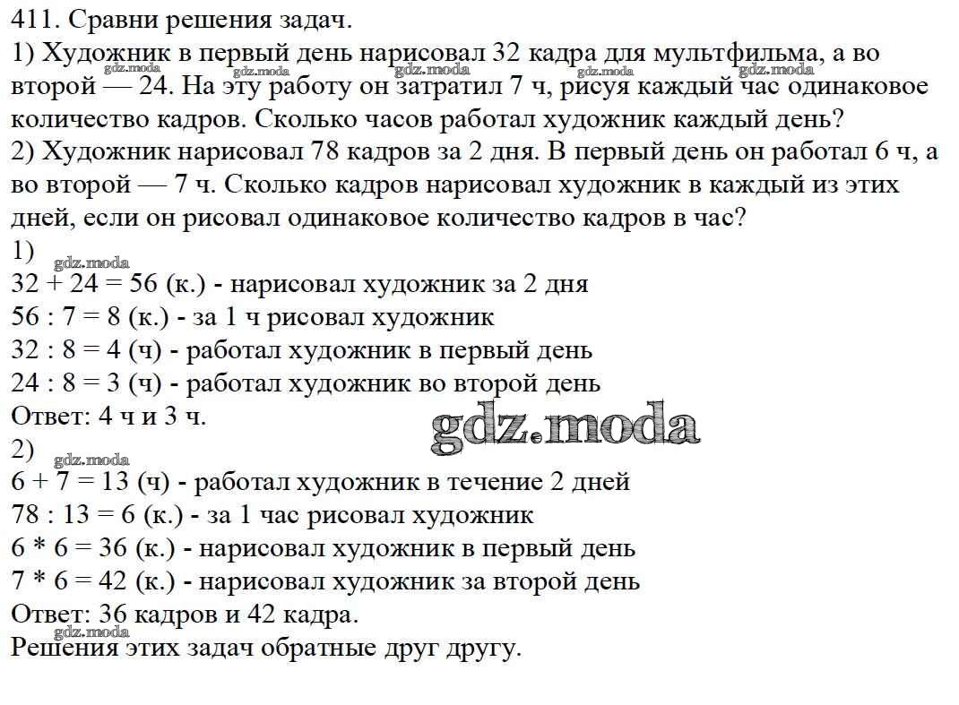 ОТВЕТ на задание № 411 Учебник по Математике 4 класс Моро Школа России