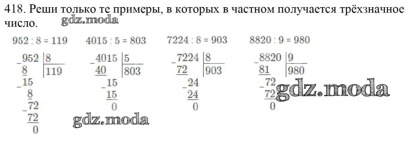 ОТВЕТ на задание № 418 Учебник по Математике 4 класс Моро Школа России