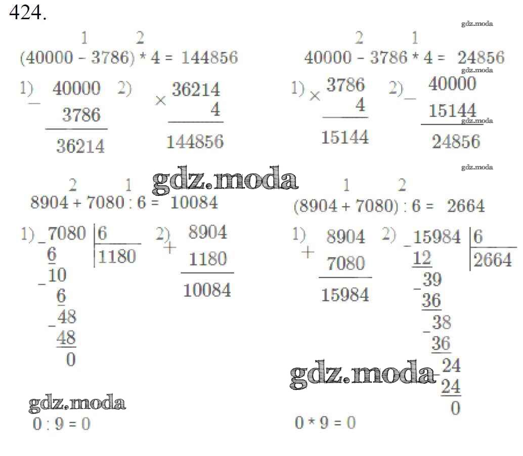 ОТВЕТ на задание № 424 Учебник по Математике 4 класс Моро Школа России