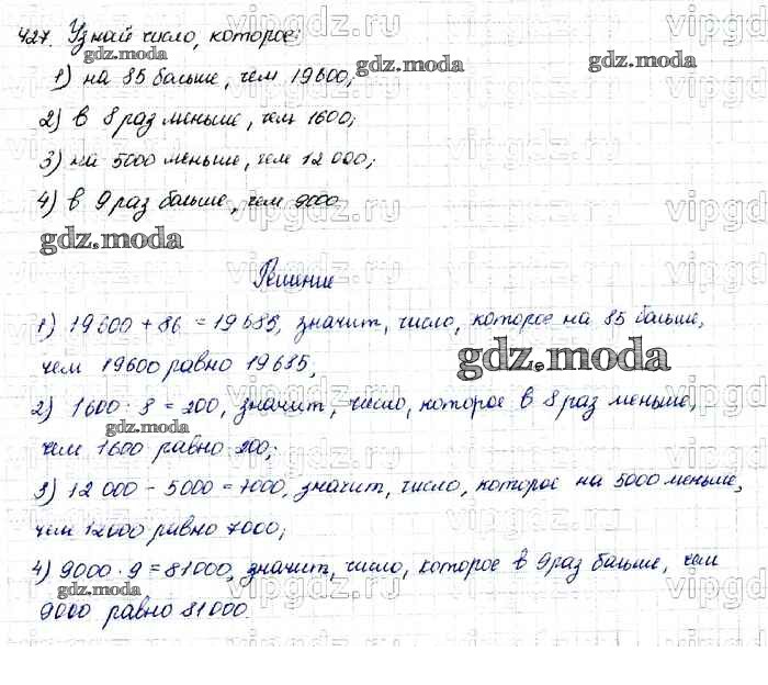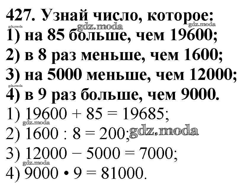 ОТВЕТ на задание № 427 Учебник по Математике 4 класс Моро Школа России