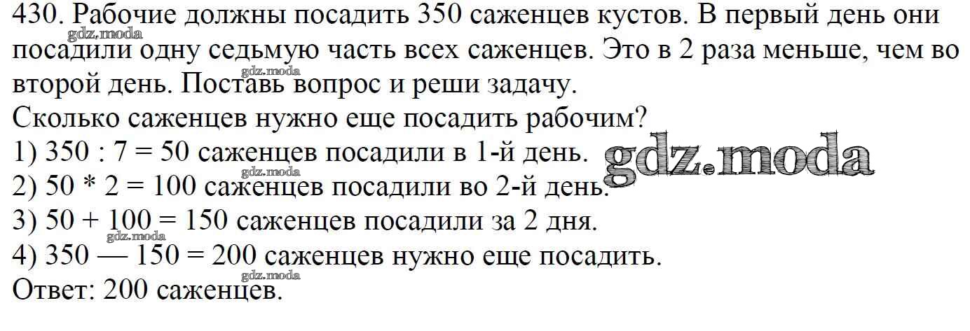 ОТВЕТ на задание № 430 Учебник по Математике 4 класс Моро Школа России