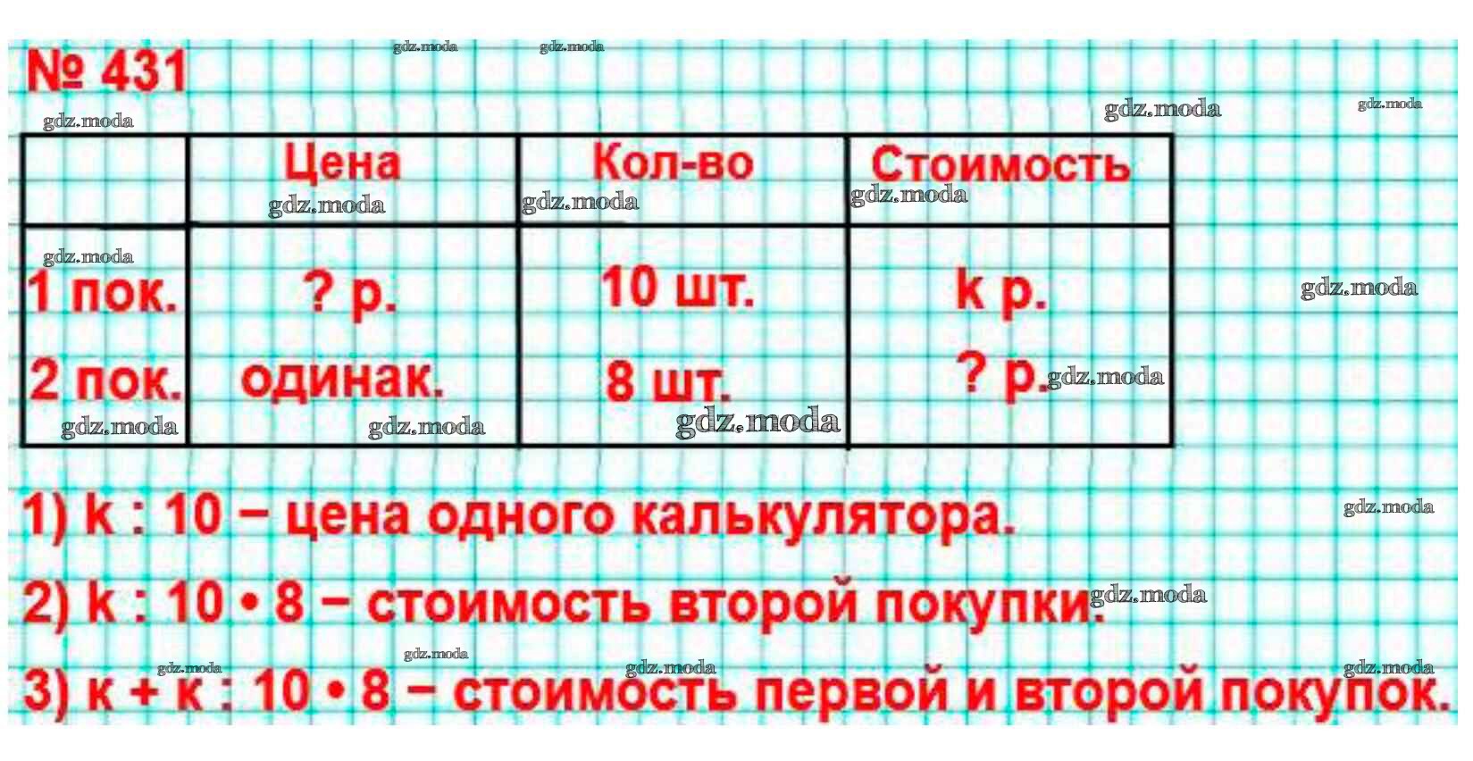 ОТВЕТ на задание № 431 Учебник по Математике 4 класс Моро Школа России