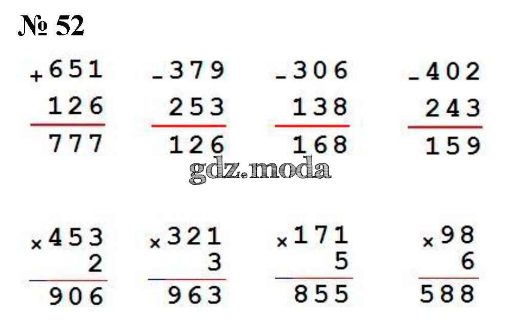 ОТВЕТ на задание № 52 Учебник по Математике 4 класс Моро Школа России