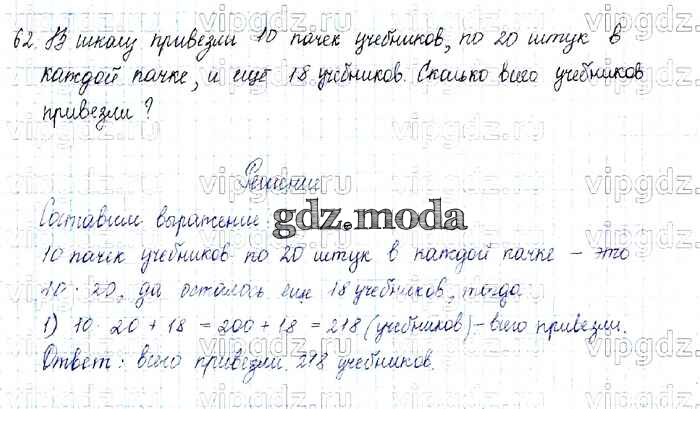 ОТВЕТ на задание № 62 Учебник по Математике 4 класс Моро Школа России