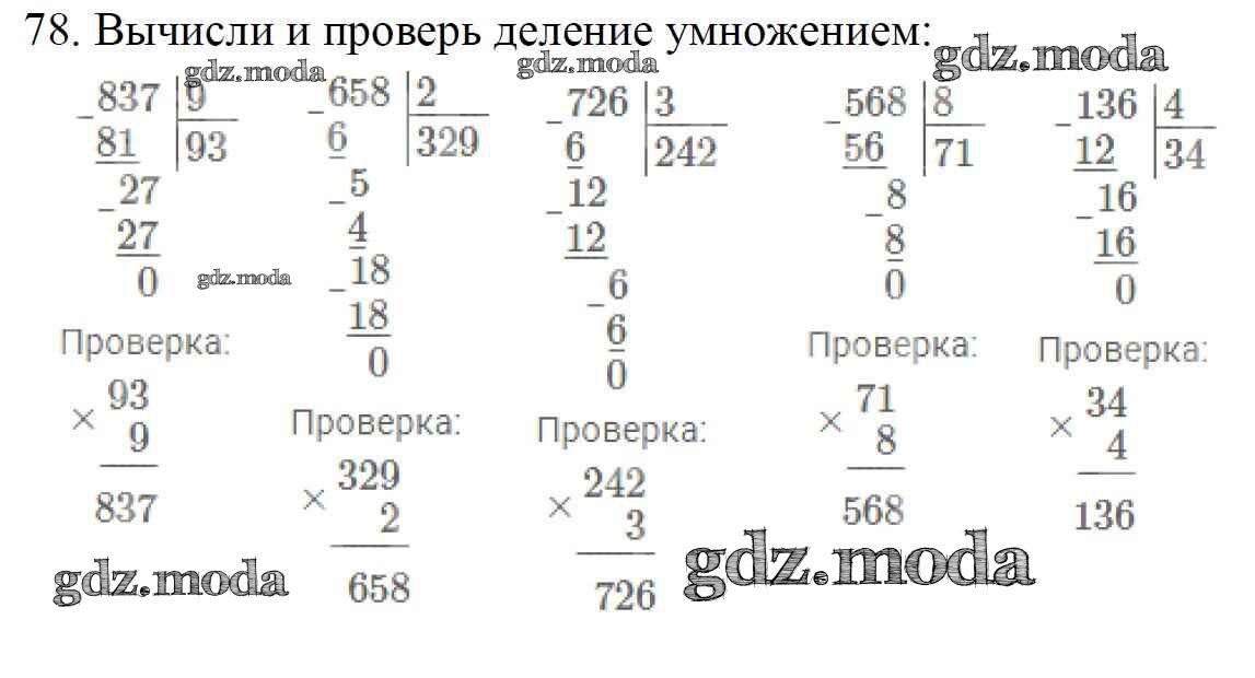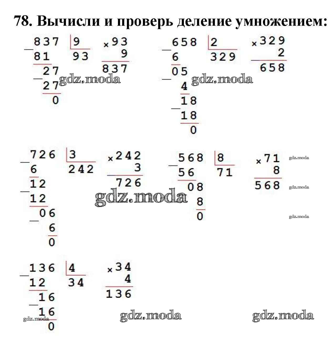 ОТВЕТ на задание № 78 Учебник по Математике 4 класс Моро Школа России