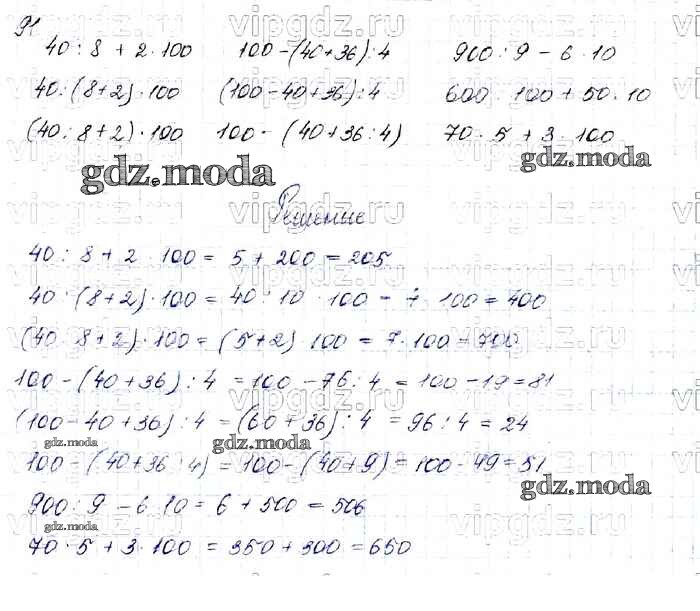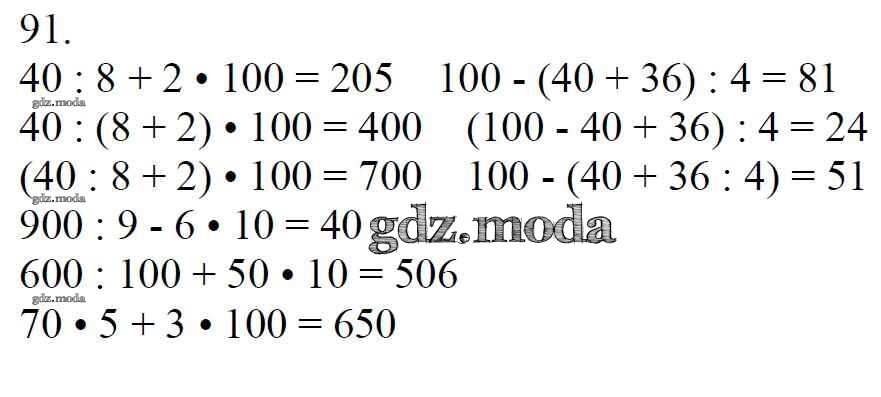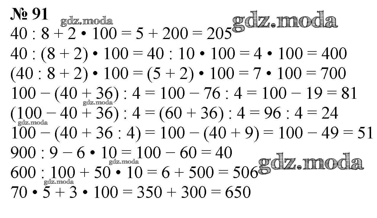 ОТВЕТ на задание № 91 Учебник по Математике 4 класс Моро Школа России