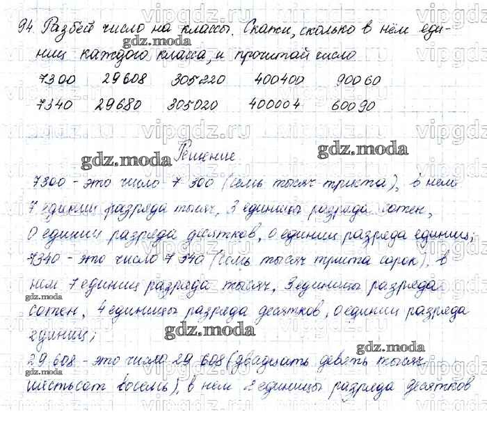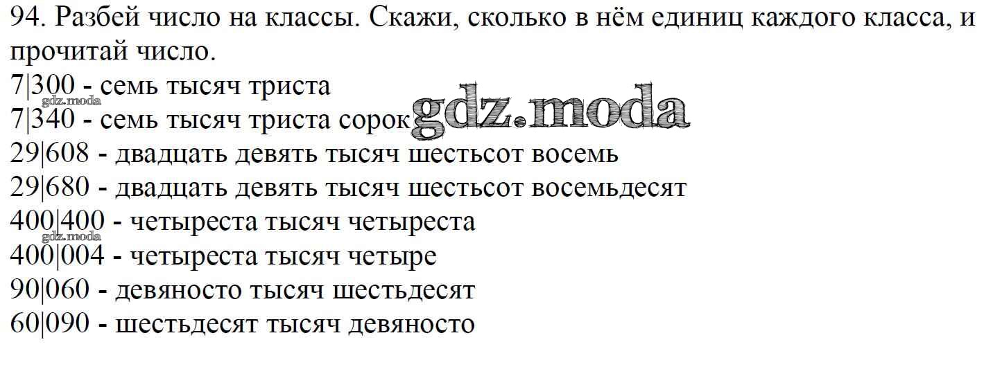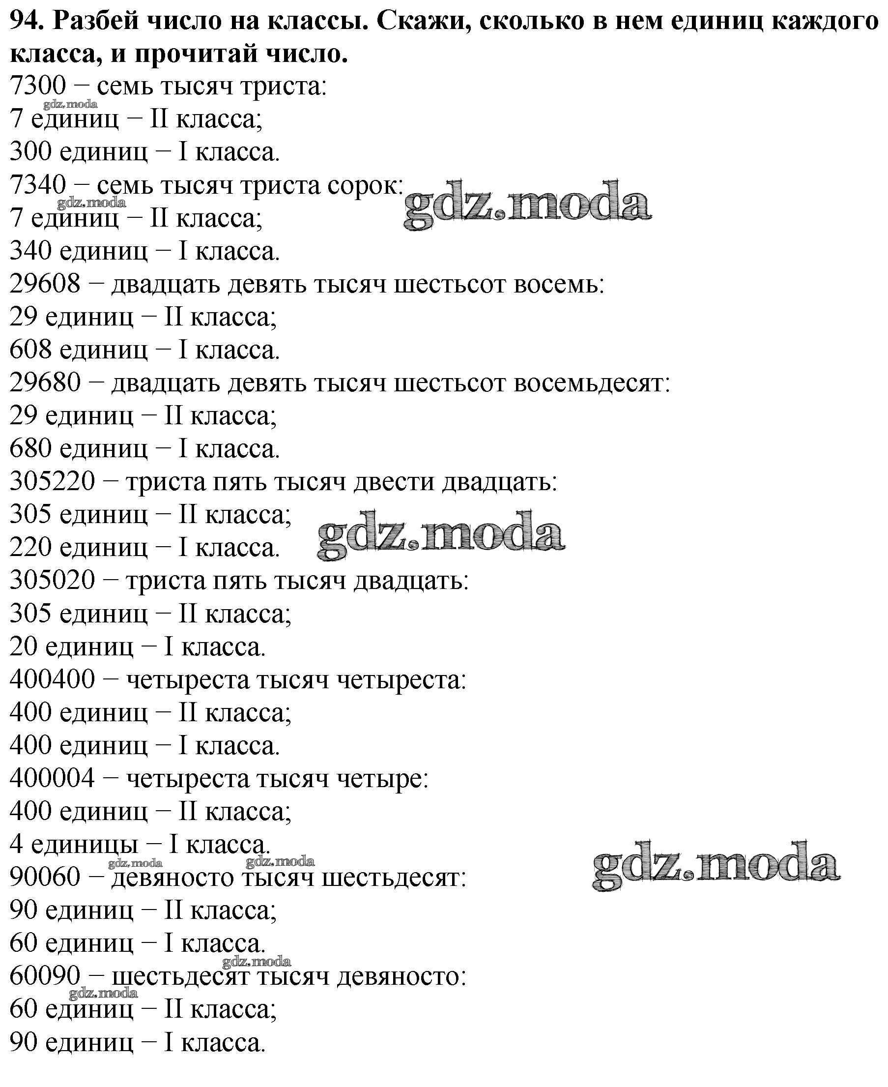 ОТВЕТ на задание № 94 Учебник по Математике 4 класс Моро Школа России