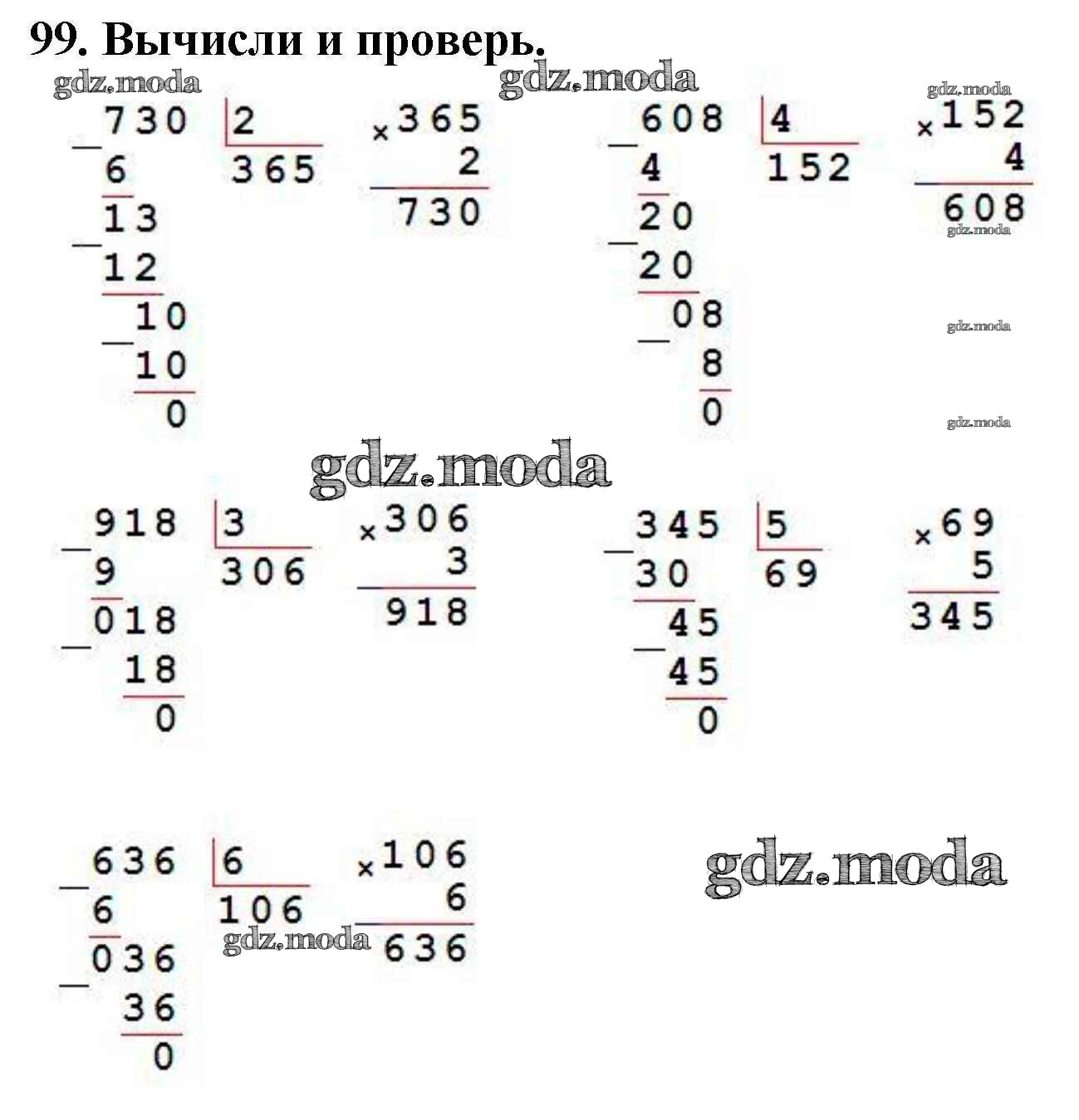 ОТВЕТ на задание № 99 Учебник по Математике 4 класс Моро Школа России