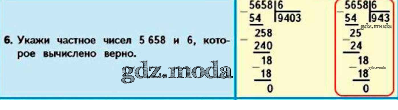 ОТВЕТ на задание № 6 Учебник по Математике 4 класс Моро Школа России