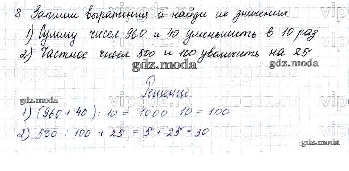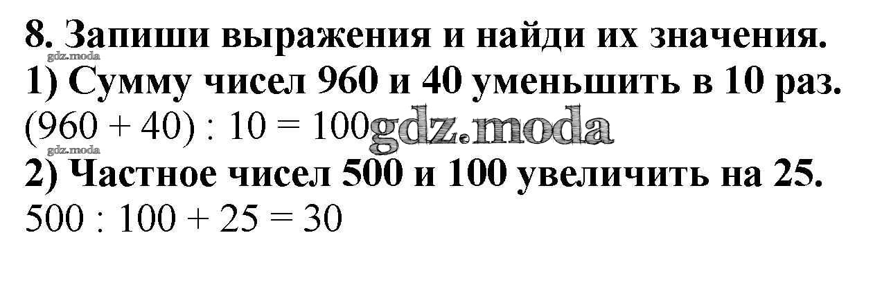 ОТВЕТ на задание № 8 Учебник по Математике 4 класс Моро Школа России