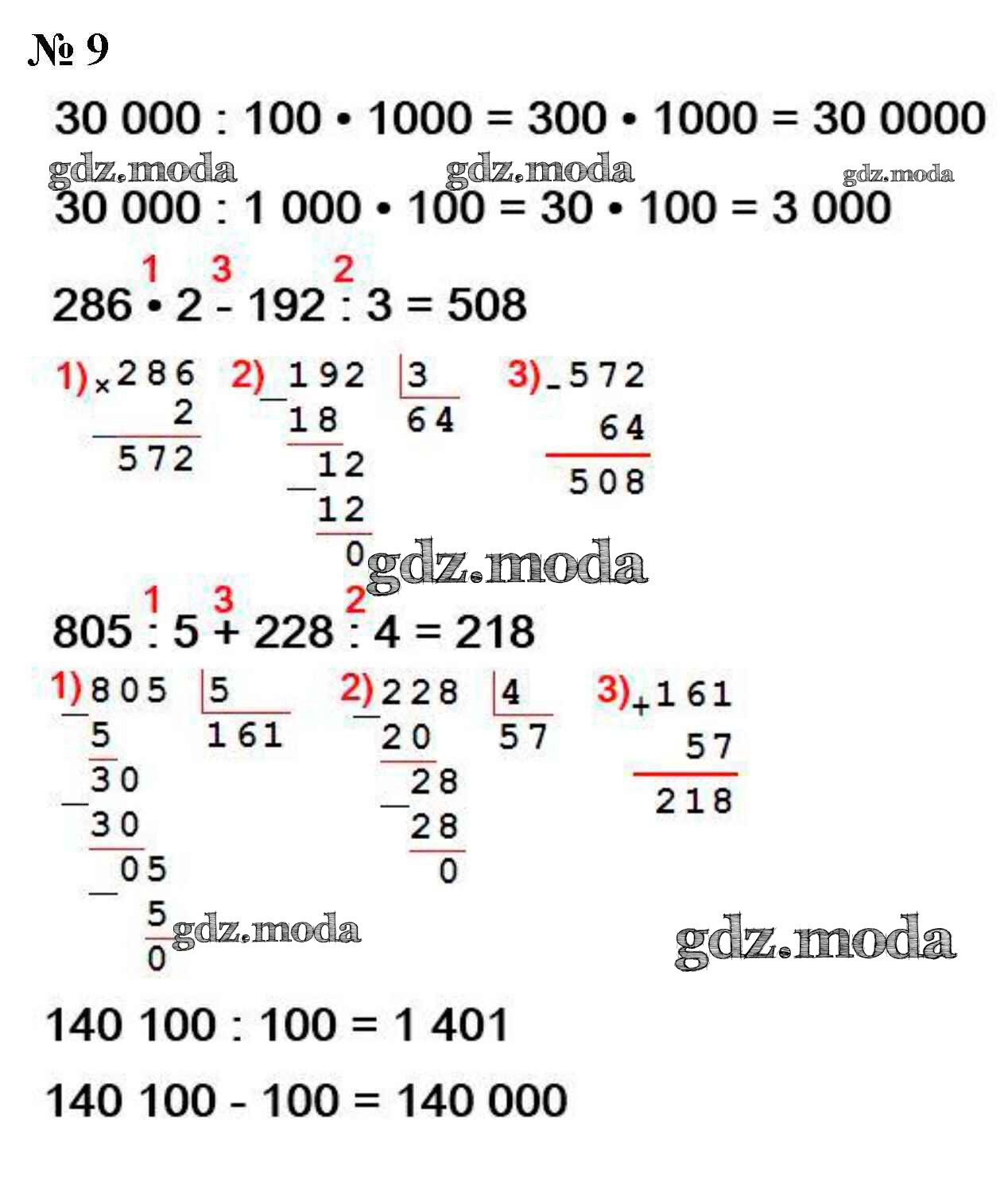 ОТВЕТ на задание № 9 Учебник по Математике 4 класс Моро Школа России