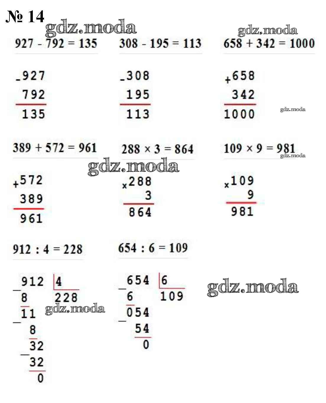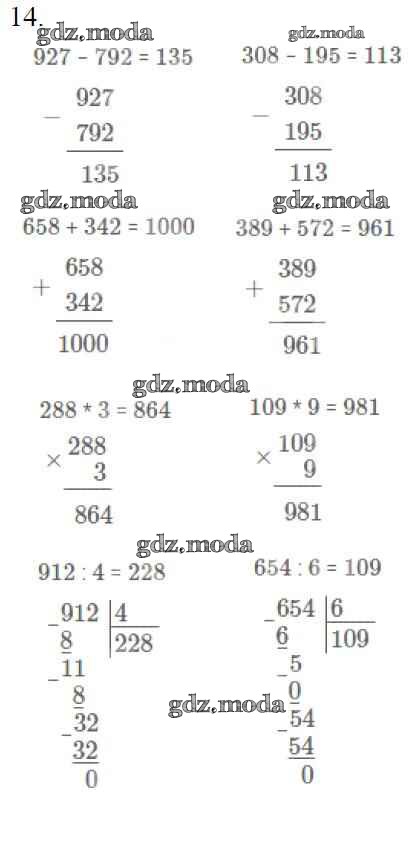 ОТВЕТ на задание № 14 Учебник по Математике 4 класс Моро Школа России