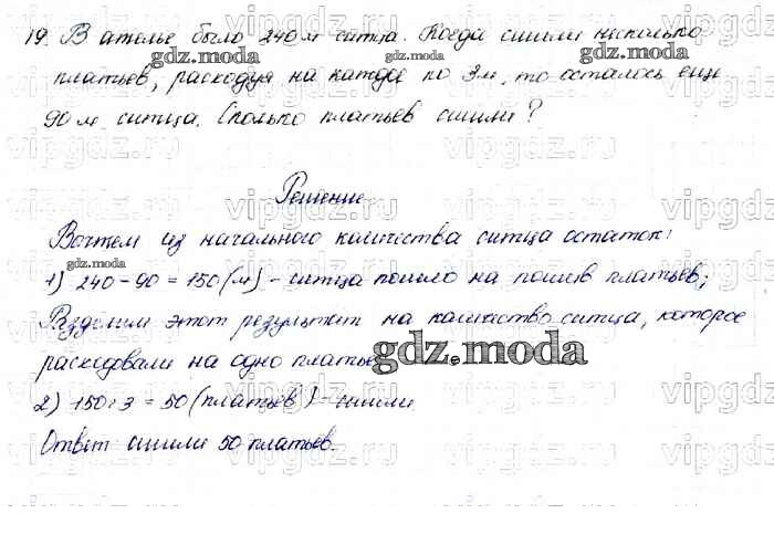 ОТВЕТ на задание № 19 Учебник по Математике 4 класс Моро Школа России