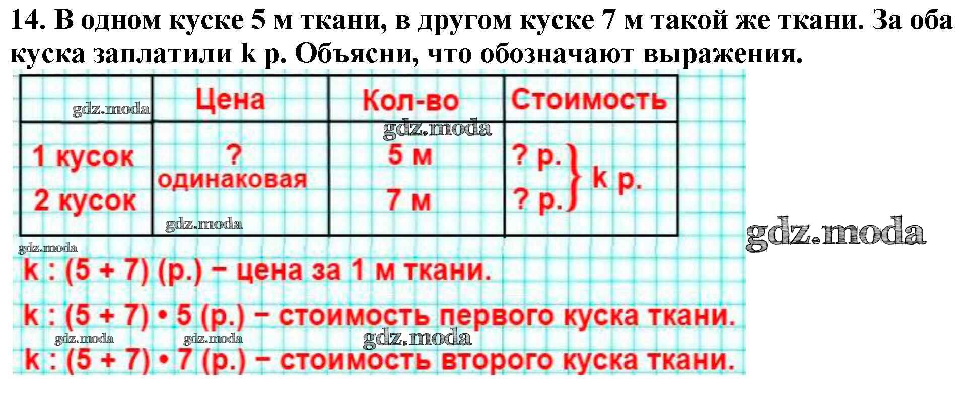 ОТВЕТ на задание № 14 Учебник по Математике 4 класс Моро Школа России