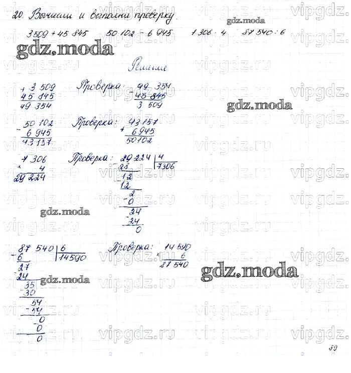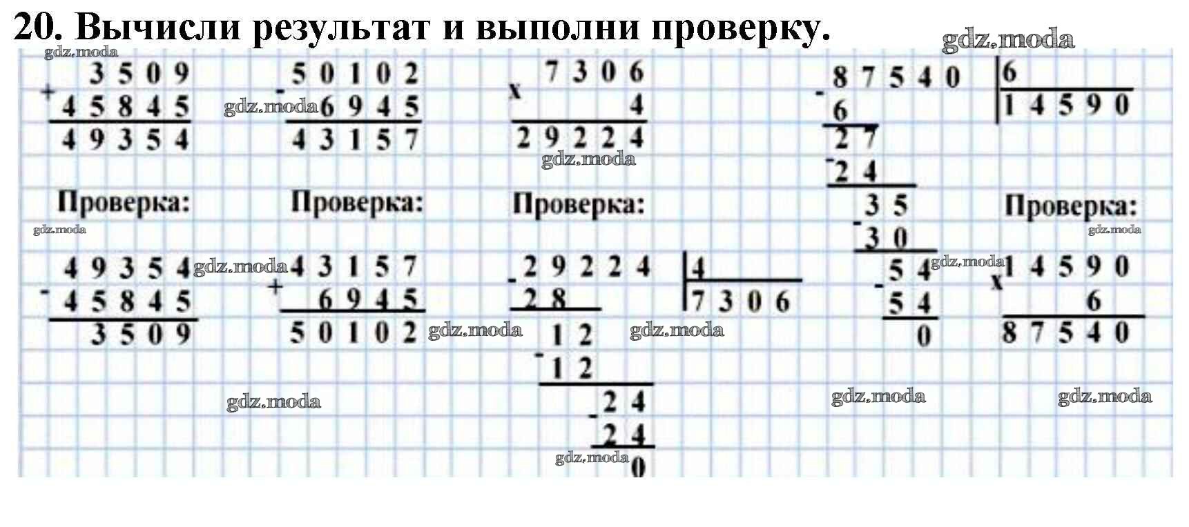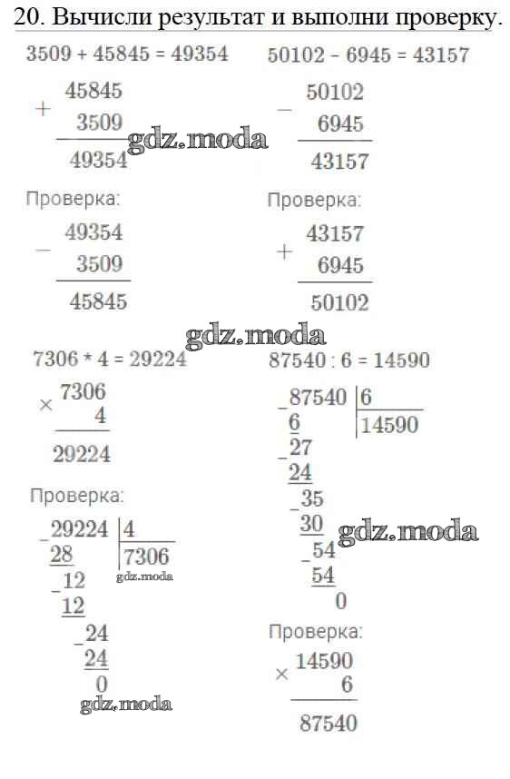 ОТВЕТ на задание № 20 Учебник по Математике 4 класс Моро Школа России