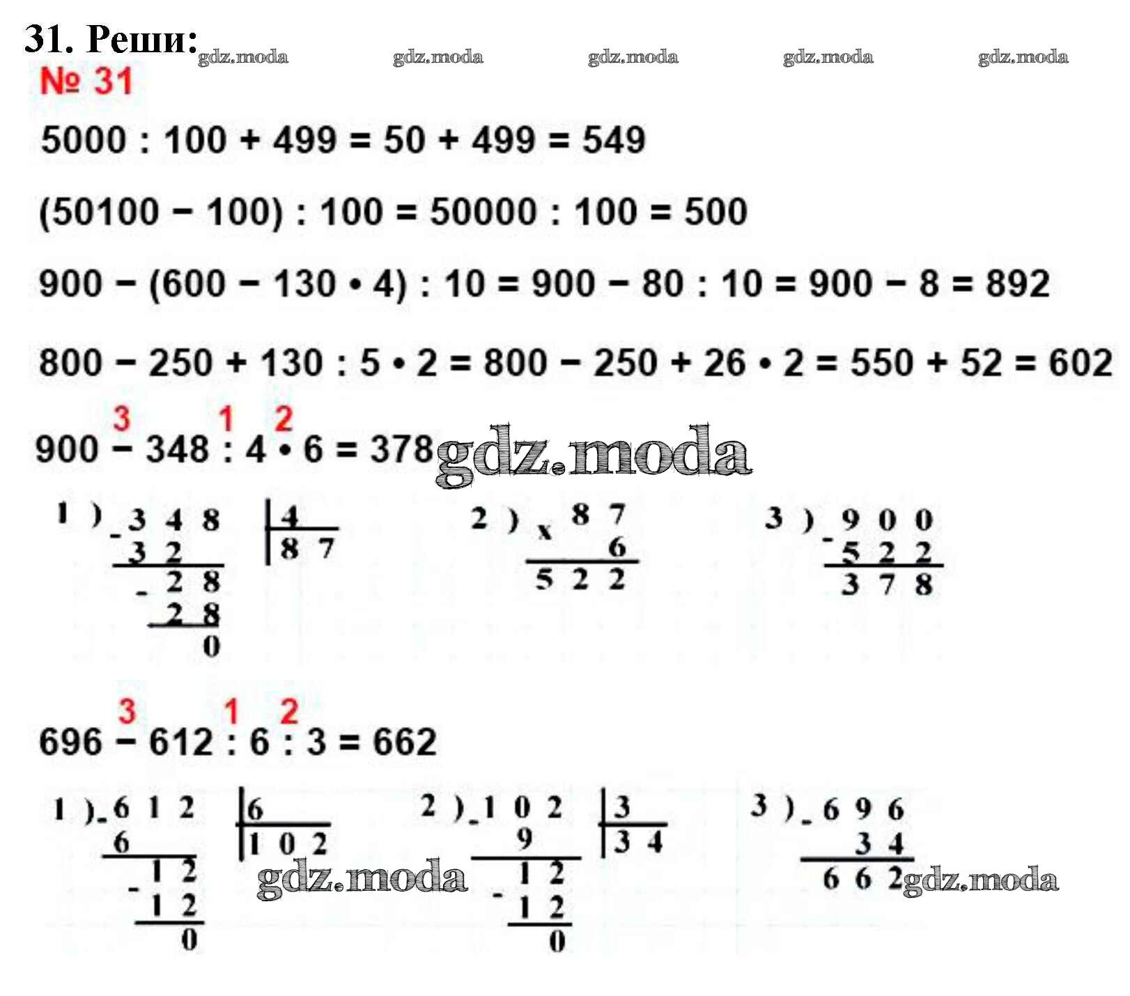 ОТВЕТ на задание № 31 Учебник по Математике 4 класс Моро Школа России
