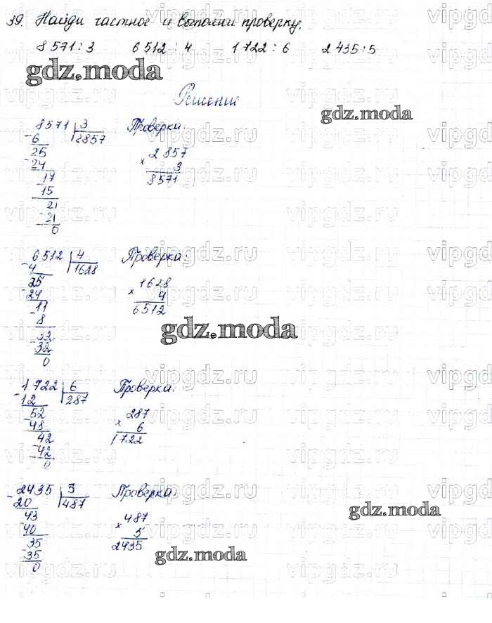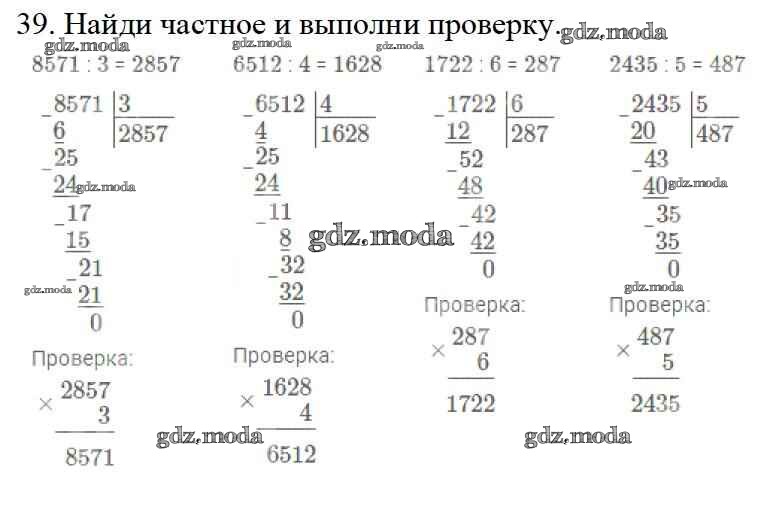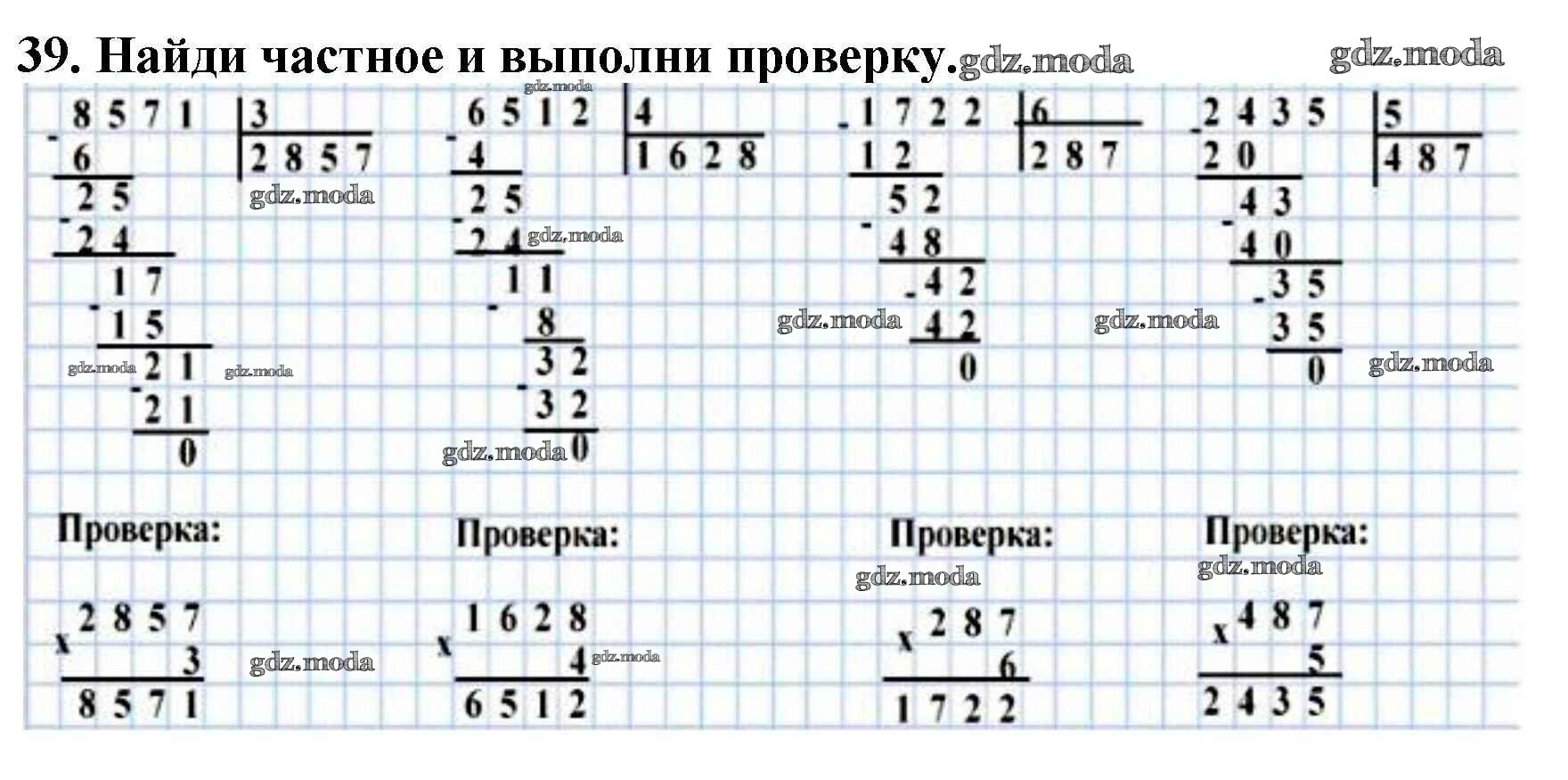 ОТВЕТ на задание № 39 Учебник по Математике 4 класс Моро Школа России
