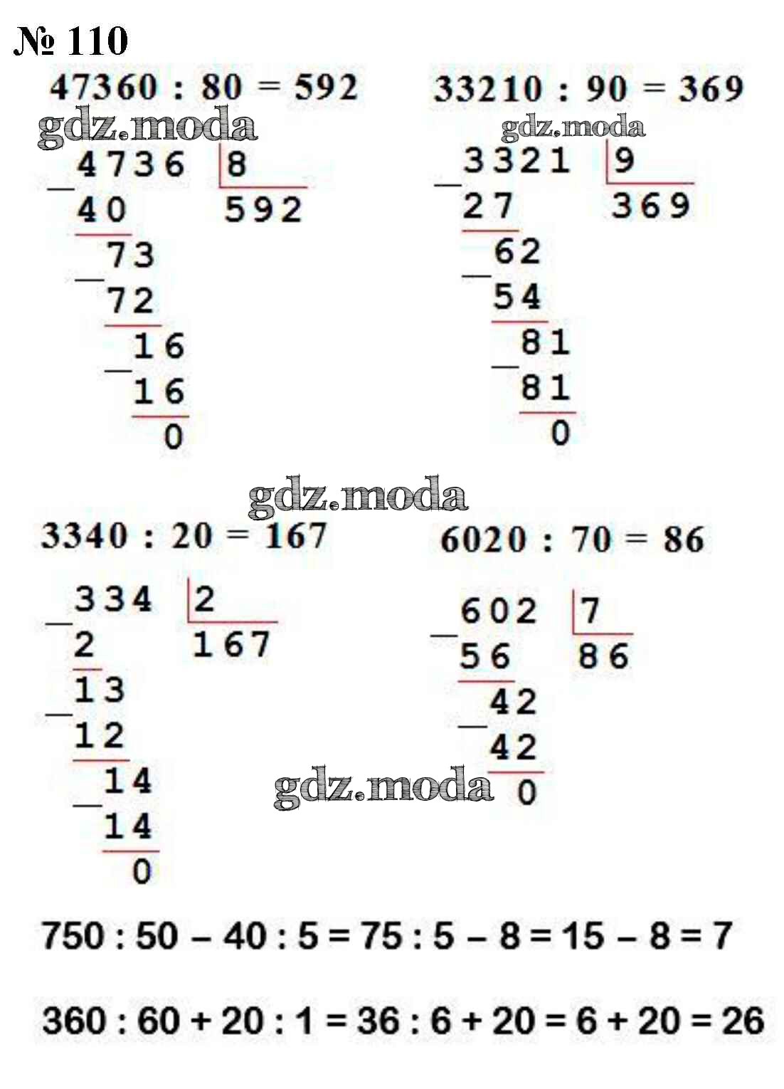 ОТВЕТ на задание № 110 Учебник по Математике 4 класс Моро Школа России
