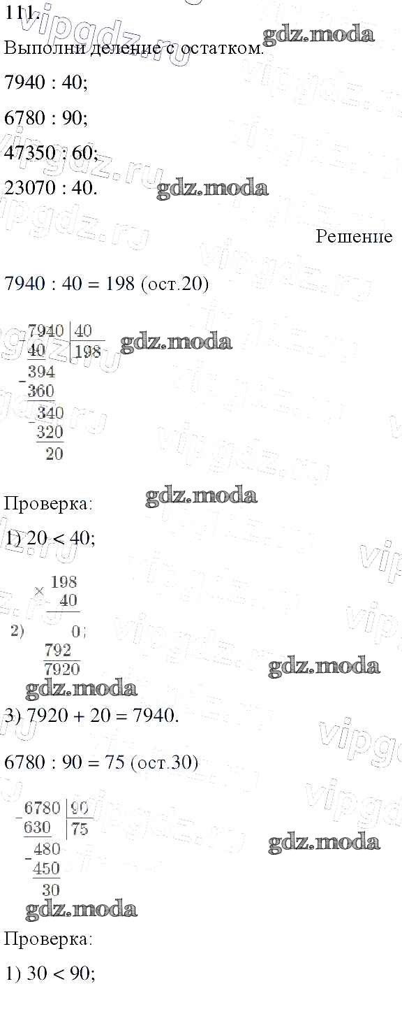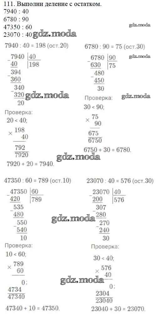 ОТВЕТ на задание № 111 Учебник по Математике 4 класс Моро Школа России