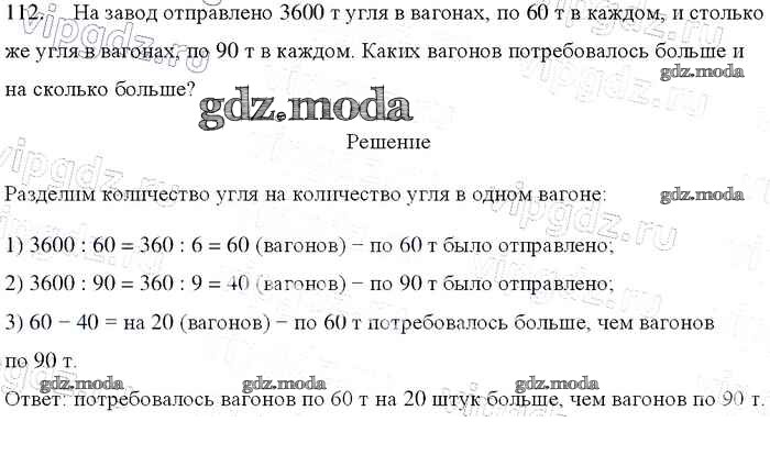 ОТВЕТ на задание № 112 Учебник по Математике 4 класс Моро Школа России