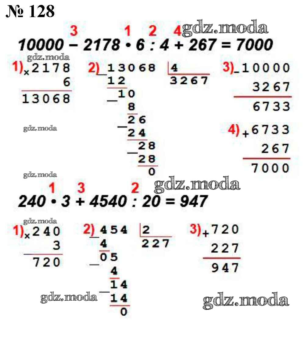 ОТВЕТ на задание № 128 Учебник по Математике 4 класс Моро Школа России