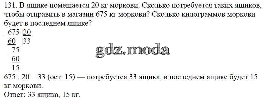 ОТВЕТ на задание № 131 Учебник по Математике 4 класс Моро Школа России