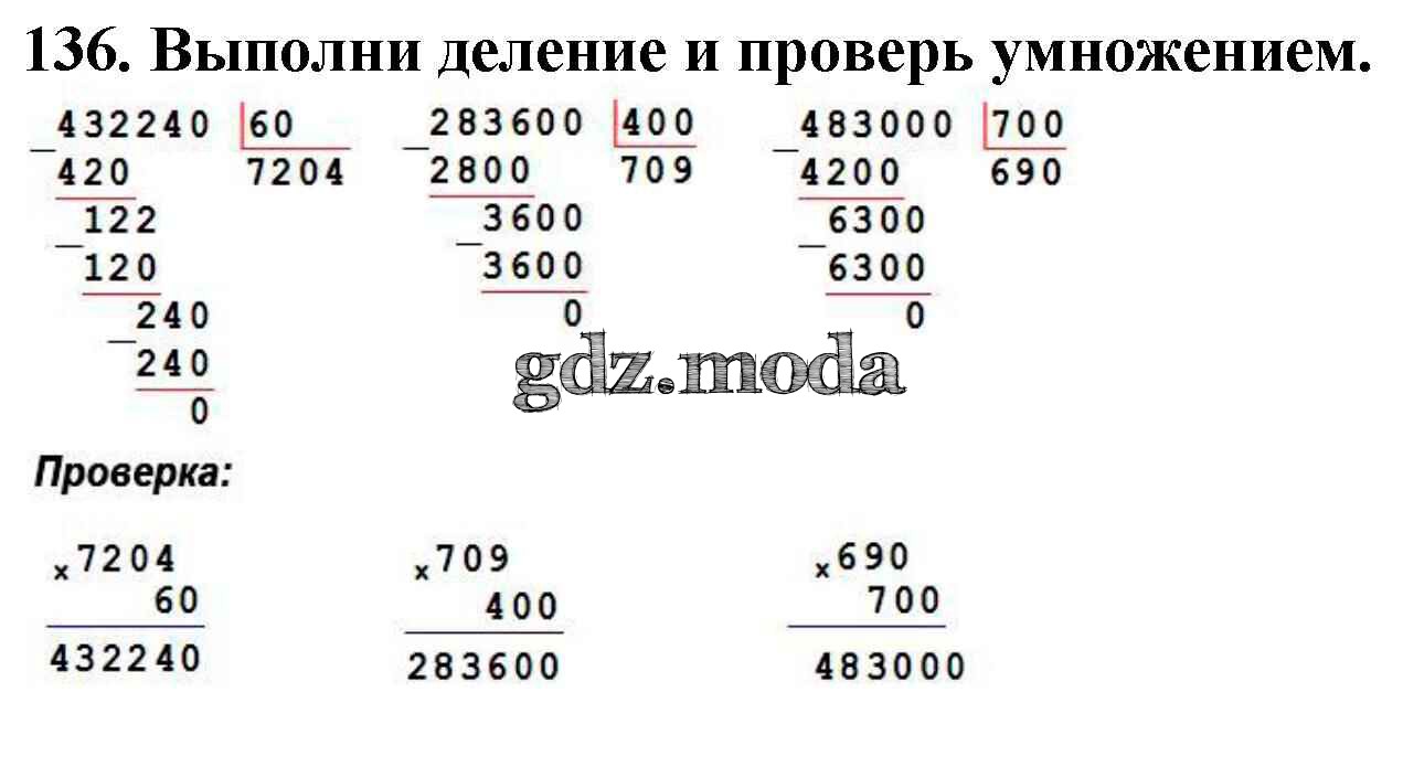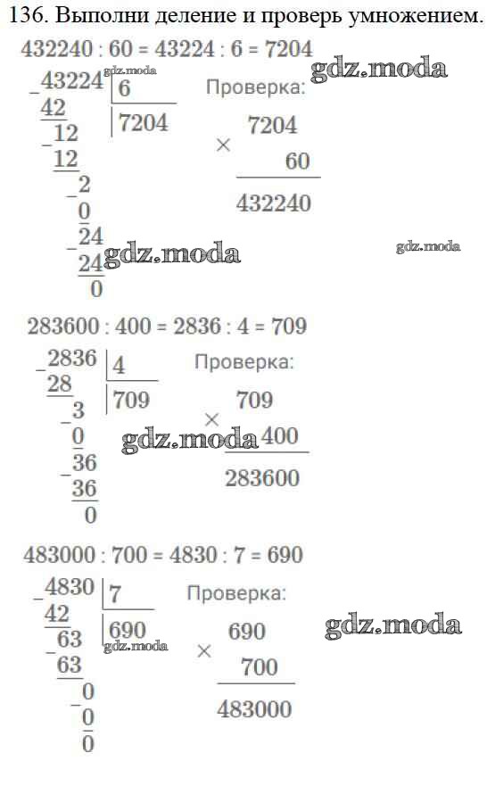 ОТВЕТ на задание № 136 Учебник по Математике 4 класс Моро Школа России